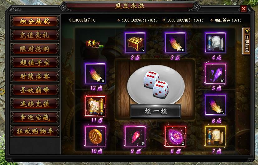 1.2 活动期间内击杀boss可获得积分,每天最多可以获得3次摇奖机会