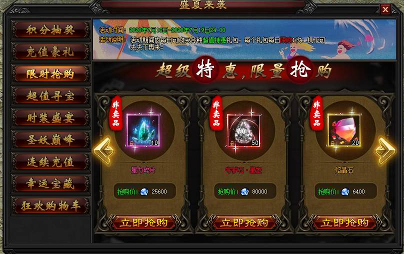 活动时间:2020年07月16日00:00-2020年07月19日24:00