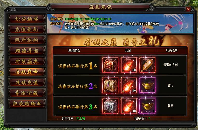 6.2 活动期间内,累计消费钻石达到对应金额即可参与排名,活动结束后排名前三的玩家可通过邮件领取对应奖励